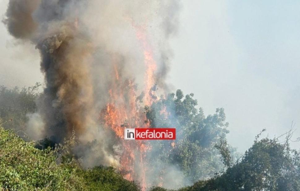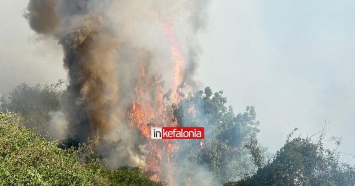 Φωτιά στα Μεταξάτα Κεφαλονιάς – Μήνυμα του 112 για εκκένωση