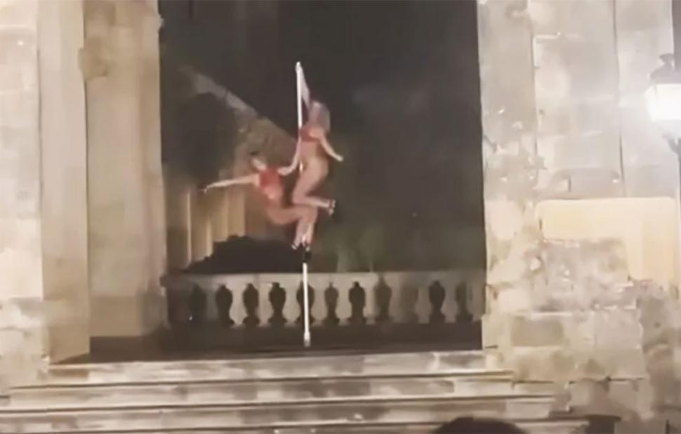 Στα Παλαιά Ανάκτορα είχε τοποθετηθεί ένας στύλος, πάνω στον οποίο πόζαραν ημίγυμνα μοντέλα και έκαναν pole dancing.