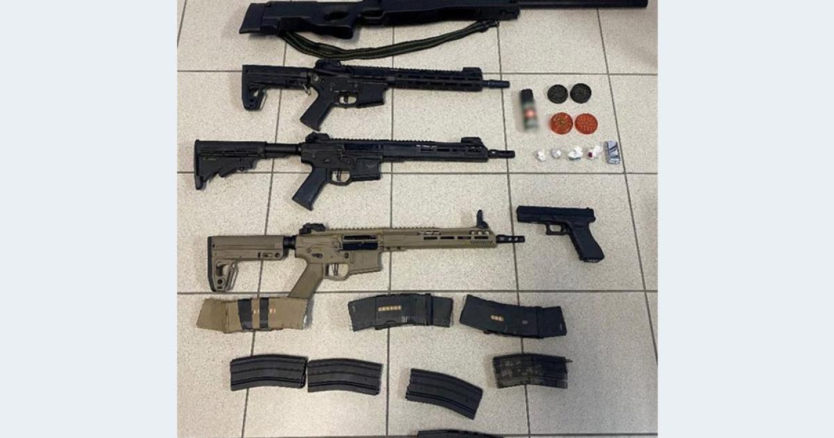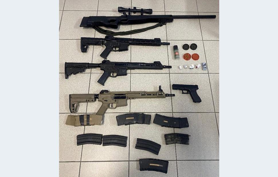 Επιπλέον, σε έρευνα σε οικία του 22χρονου, από αστυνομικούς του αστυνομικού τμήματος Σικυωνίων, με τη συνδρομή αστυνομικών της Ο.Π.Κ.Ε. Κορινθίας, βρέθηκαν συνολικά και κατασχέθηκαν: 4 μεταλλικά όπλα ρέπλικα τύπου τυφέκια, 1 μεταλλικό πιστόλι ρέπλικα μετά γεμιστήρα, 11 γεμιστήρες (τυφεκίων), ένας τρίφτης κάνναβης και μία ζυγαριά. Η αστυνομική έρευνα και το προανακριτικό έργο διενεργούνται από το Αστυνομικό Τμήμα Σικυωνίων.