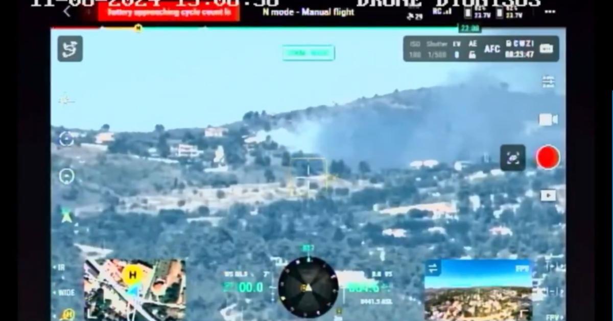 Το βίντεο δείχνει το drone της Πάρνηθας να εντοπίζει την έναρξη της πυρκαγιάς στον Βαρνάβα στις 15:02.