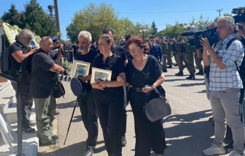 Η εξόδιος ακολουθία έγινβε στον Ιερό Ναό Αγίου Γεωργίου όπου έφτασαν η οικογένεια και οι φίλοι του ανθυποσμηναγού, με λουλούδια και φωτογραφίες του στα χέρια.