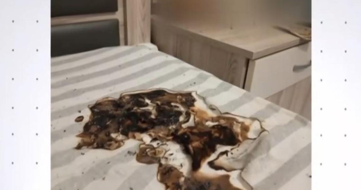 Όπως λέει, ευτυχώς από την ανάφλεξη του κινητού κάηκε μόνο το στρώμα του κρεβατιού.