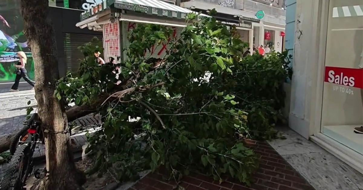 Εξαιτίας μάλιστα των ανέμων, νωρίτερα το πρωί έπεσε ένα δέντρο στην οδό Ερμού, στη συμβολή με την οδό Ευαγγελιστρίας.