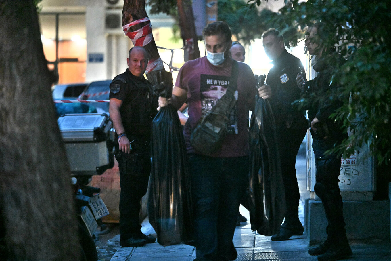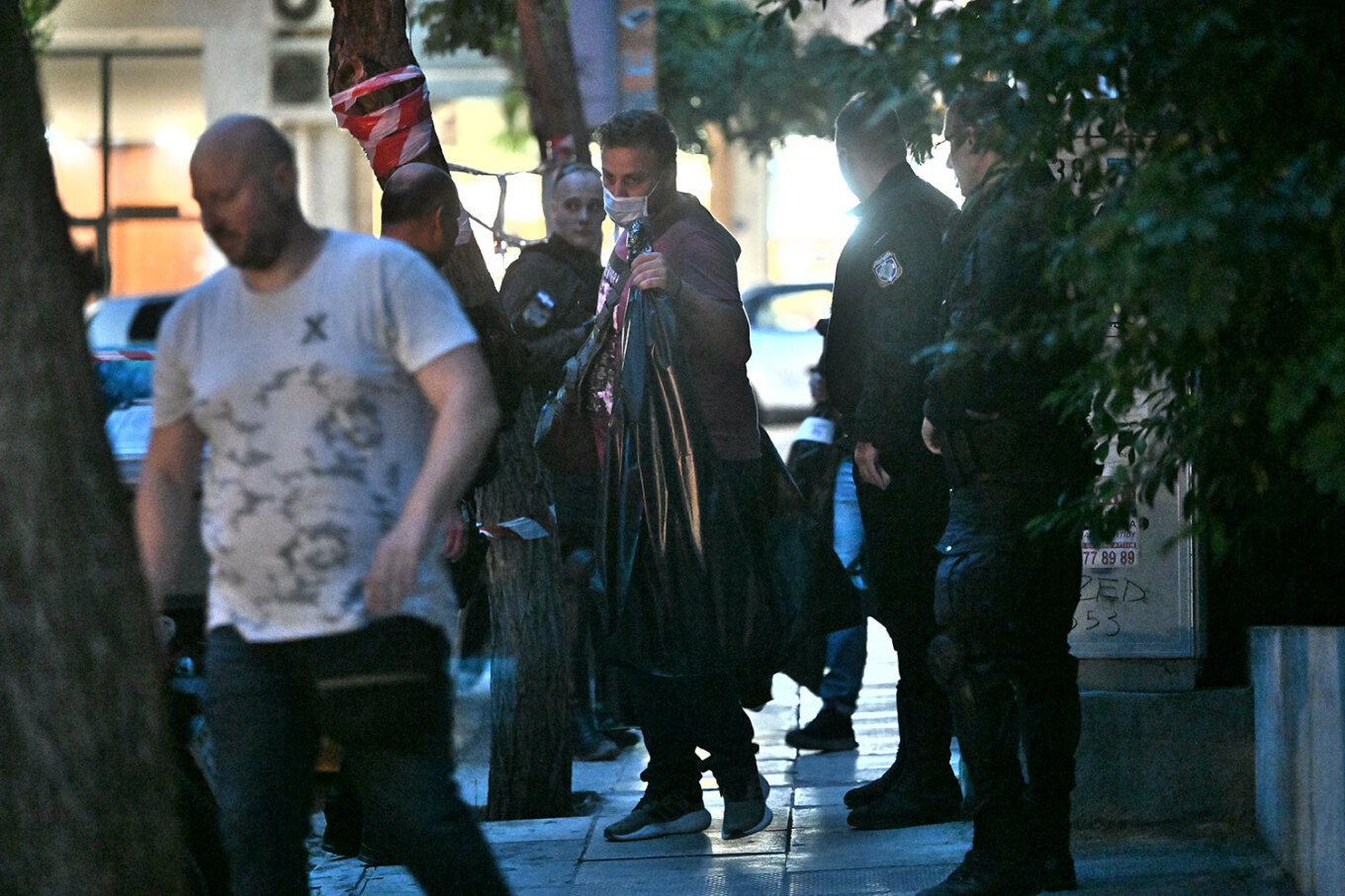 Οι αστυνομικοί έβγαλαν κουτιά και μεγάλες μαύρες σακούλες.