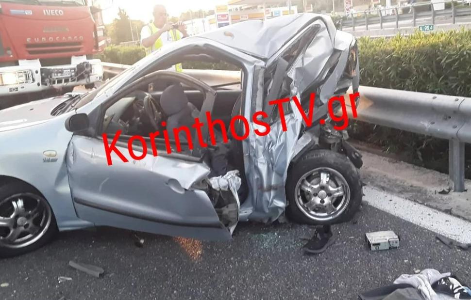 Όπως φαίνεται από τις φωτογραφίες που δημοσιεύει το korinthosTV, το πίσω μέρος της καμπίνας του αυτοκινήτου ουσιαστικά συνεθλίβη.