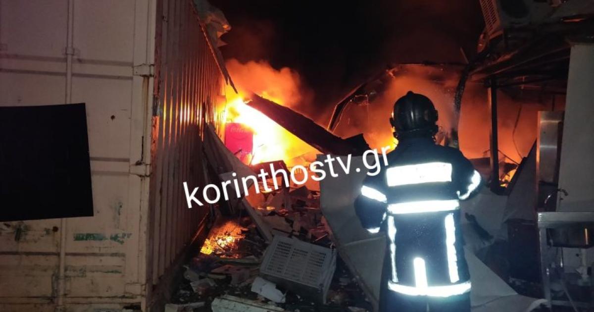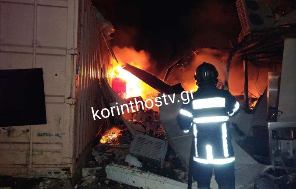 Τραγωδία εκτυλίχθηκε τη νύχτα στην Κόρινθο. Ένας άνθρωπος έχασε τη ζωή του μετά από έκρηξη και μεγάλη φωτιά σε χώρο εκδηλώσεων στην οδό Αγίας Άννης.