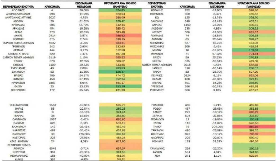 Tετραψήφιος κρουσμάτων καταγράφηκε στις περιοχές της Αχαΐας, της Ευβοίας, του Ηρακλείου, των Ιωαννίνων και της Λάρισας.