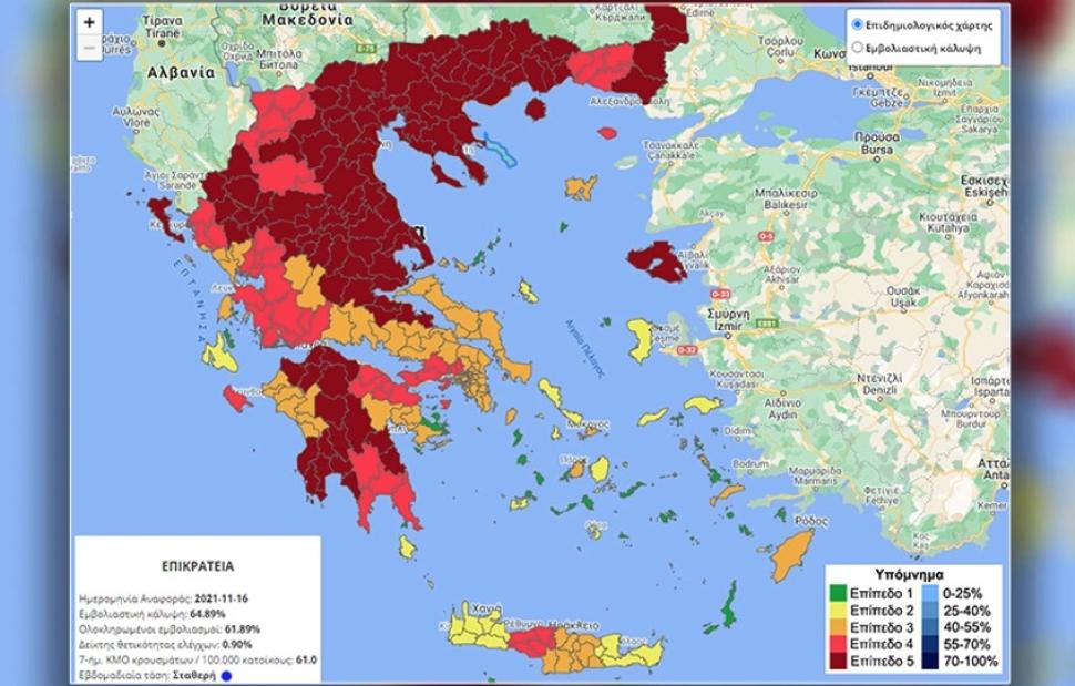 Αλλαγές έγιναν στον επιδημιολογικό χάρτη της χώρας από την αρμόδια επιτροπή. Οι αλλαγές έγιναν με βάση τη διασπορά του κορωνοϊού και τα επιβεβαιωμένα κρούσματα ανά περιφερειακή ενότητα.