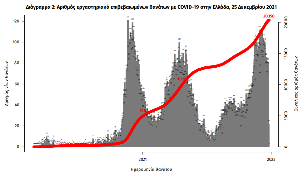 Οι νέοι θάνατοι ασθενών με COVID-19 είναι 58, ενώ από την έναρξη της επιδημίας έχουν καταγραφεί συνολικά 20.350 θάνατοι. Το 95.2% είχε υποκείμενο νόσημα ή/και ηλικία 70 ετών και άνω.