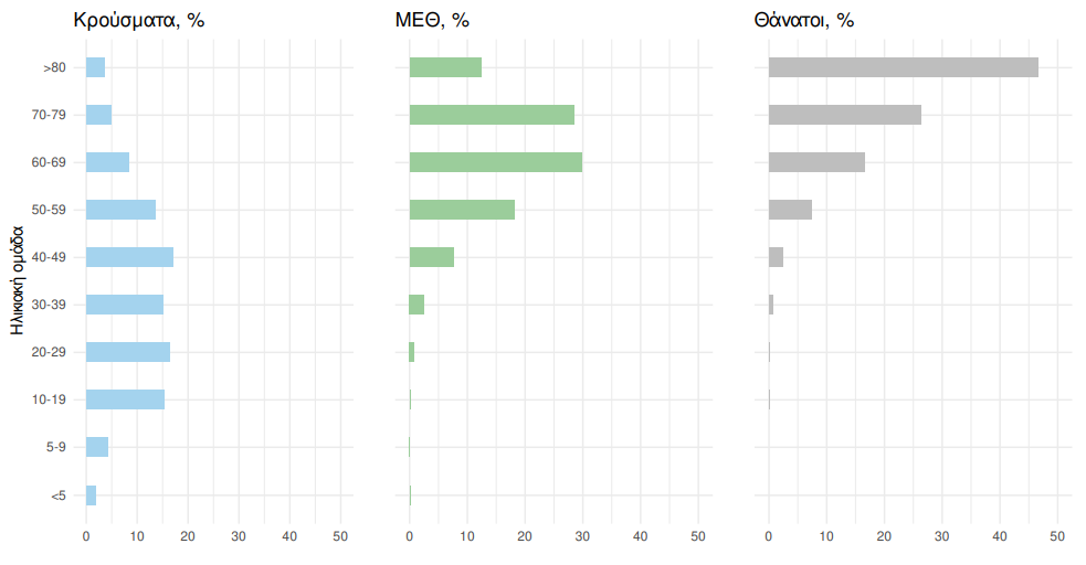 Η διάμεση ηλικία των κρουσμάτων είναι 38 έτη (εύρος 0.2 έως 106 έτη), ενώ η διάμεση ηλικία των θανόντων είναι 78 έτη (εύρος 0.2 έως 106 έτη).