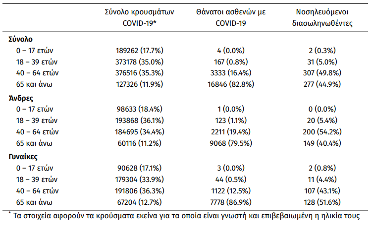 Ο συνολικός αριθμός των κρουσμάτων ανέρχεται σε 1.070.833 (ημερήσια μεταβολή +0.6%), εκ των οποίων 50.4% άνδρες.