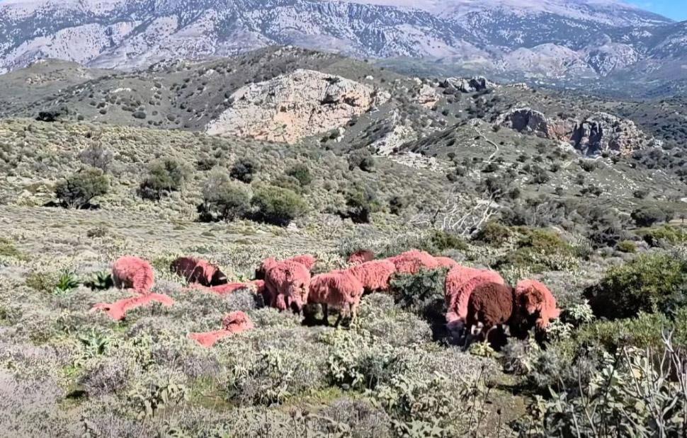 Με κόκκινη μπογιά έβαψε τα πρόβατά του κτηνοτρόφος στην Κρήτη, για να μην του τα κλέβουν.