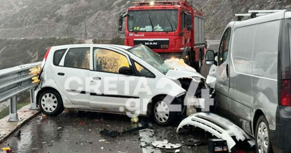 Η σύγκρουση του ΙΧ με το ασημένιο φορτηγάκι ήταν σφοδρή. Σύμφωνα με πληροφορίες από το creta24.gr το ασημένιο φορτηγάκι κατέβαινε από την Αγία Πελαγία και για άγνωστο λόγο μπήκε μπήκε στο αντίθετο ρεύμα με αποτέλεσμα να συγκρουστεί με το ΙΧ όχημα.