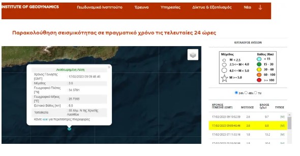 Σεισμός σημειώθηκε το πρωί της Παρασκευής στα ανοιχτά του Λασιθίου.