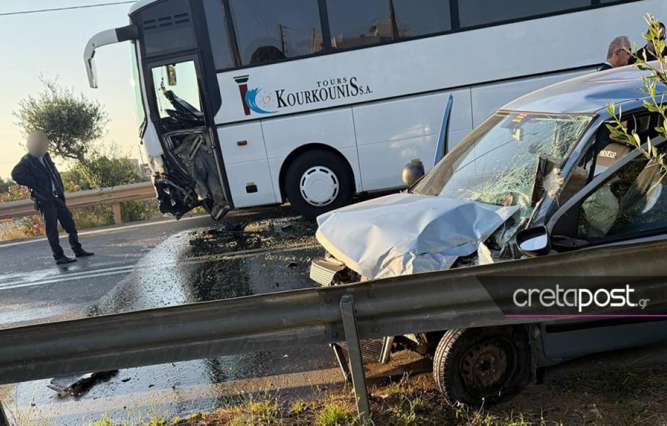 Νέο τροχαίο ατύχημα έγινε στους δρόμους της Κρήτης με αποτέλεσμα ένας άνθρωπος να οδηγηθεί στο νοσοκομείο. Όλα συνέβησαν την Κυριακή λίγο μετά τις 7 το απόγευμα στην παλαιά εθνική οδό στο ύψος των Γουβών, λίγο μετά τον κόμβο, ένα τουριστικό λεωφορείο συγκρούστηκε με αυτοκίνητο, σύμφωνα με πληροφορίες του cretapost.