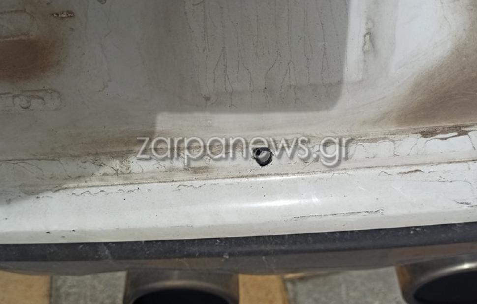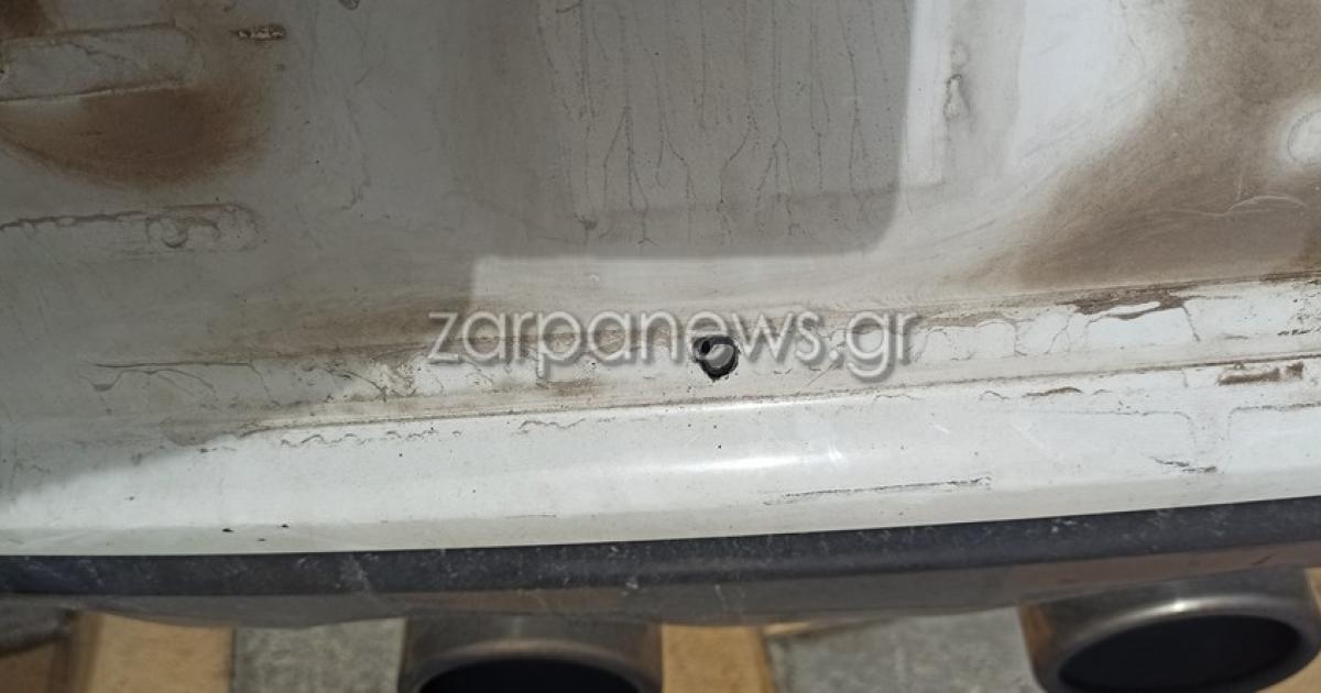 Όπως φαίνεται στις φωτογραφίες του zarpanews.gr, η σφαίρα καρφώθηκε στον προφυλακτήρα του αυτοκινήτου.