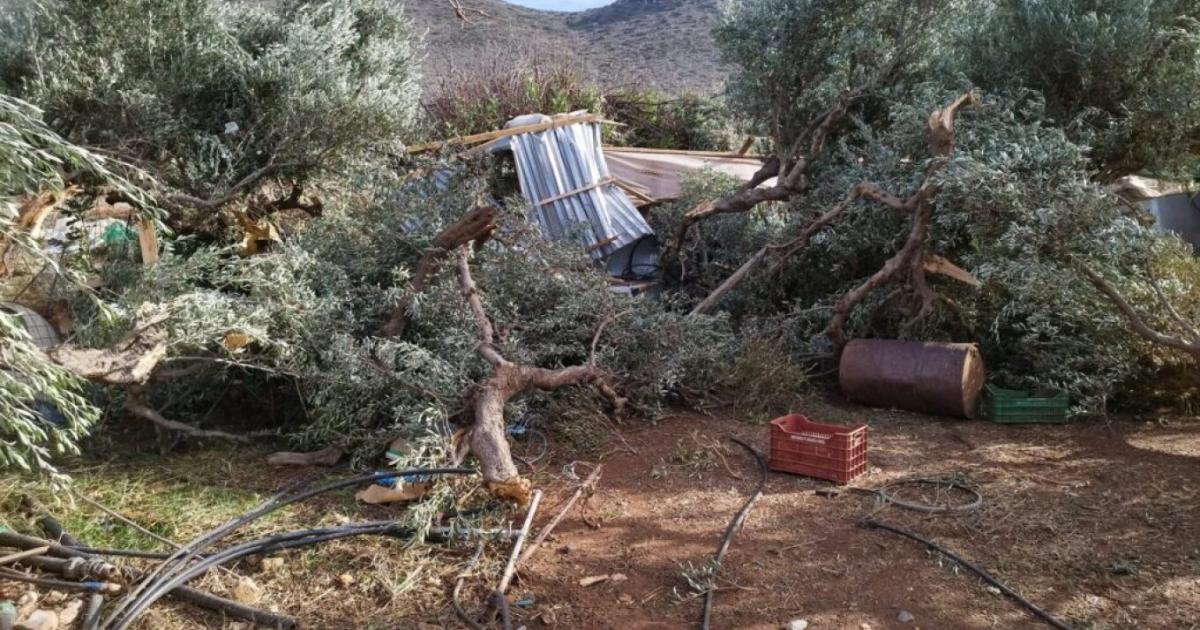Οι ισχυροί άνεμοι προκάλεσαν επίσης ζημιές σε ελαιόδεντρα, καθώς και σε δύο σημεία του δικτύου ηλεκτροδότησης, ενώ παρασύρθηκαν και κάδοι απορριμμάτων.