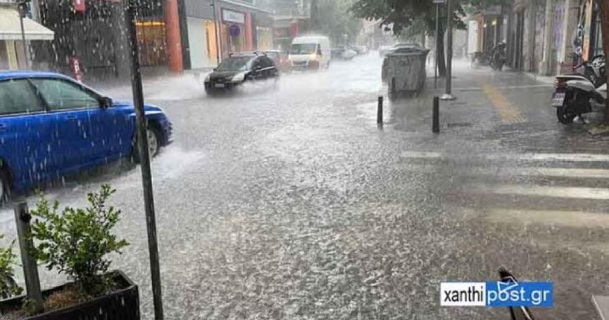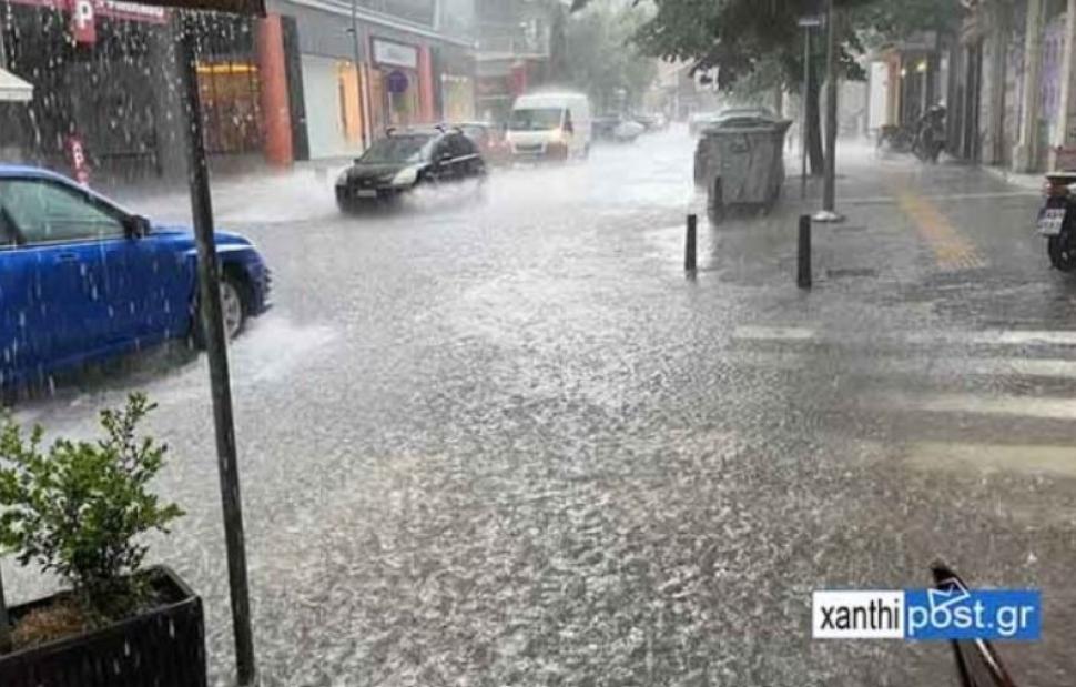 Ισχυρή βροχόπτωση και χαλαζόπτωση έπληξε το μεσημέρι την Ξάνθη. Δρόμοι πλημμύρισαν και δημιουργήθηκαν προβλήματα.