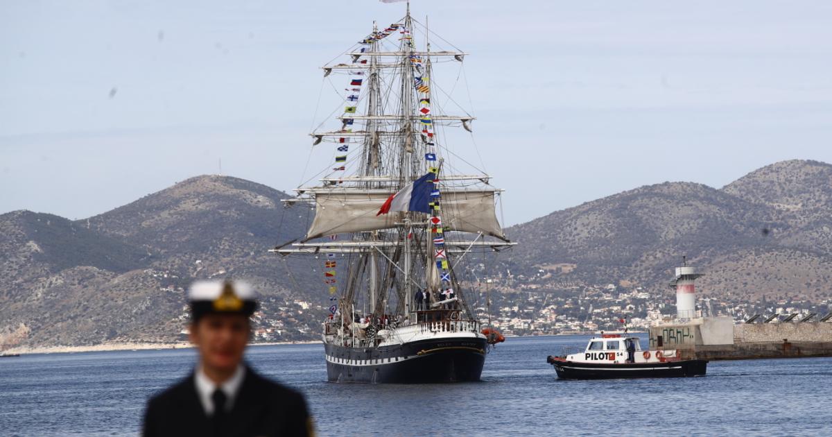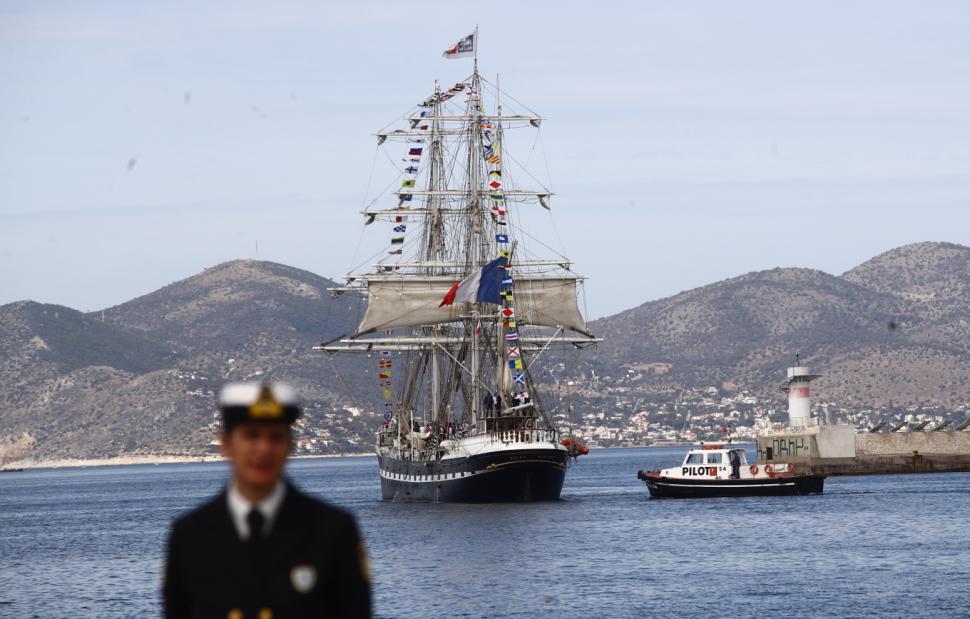 Στο μεταξύ σύμφωνα με το ρεπορτάζ της ΕΡΤ, η τριήρης του Πολεμικού Ναυτικού, «Ολυμπιάς» μαζί με 25 ιστιοπλοϊκά σκάφη συνόδευσαν το ιστιοφόρο έξω από το λιμάνι του Πειραιά μέχρι το Μικρολίμανο όπου και σάλπαρε για τη Μασσαλία.