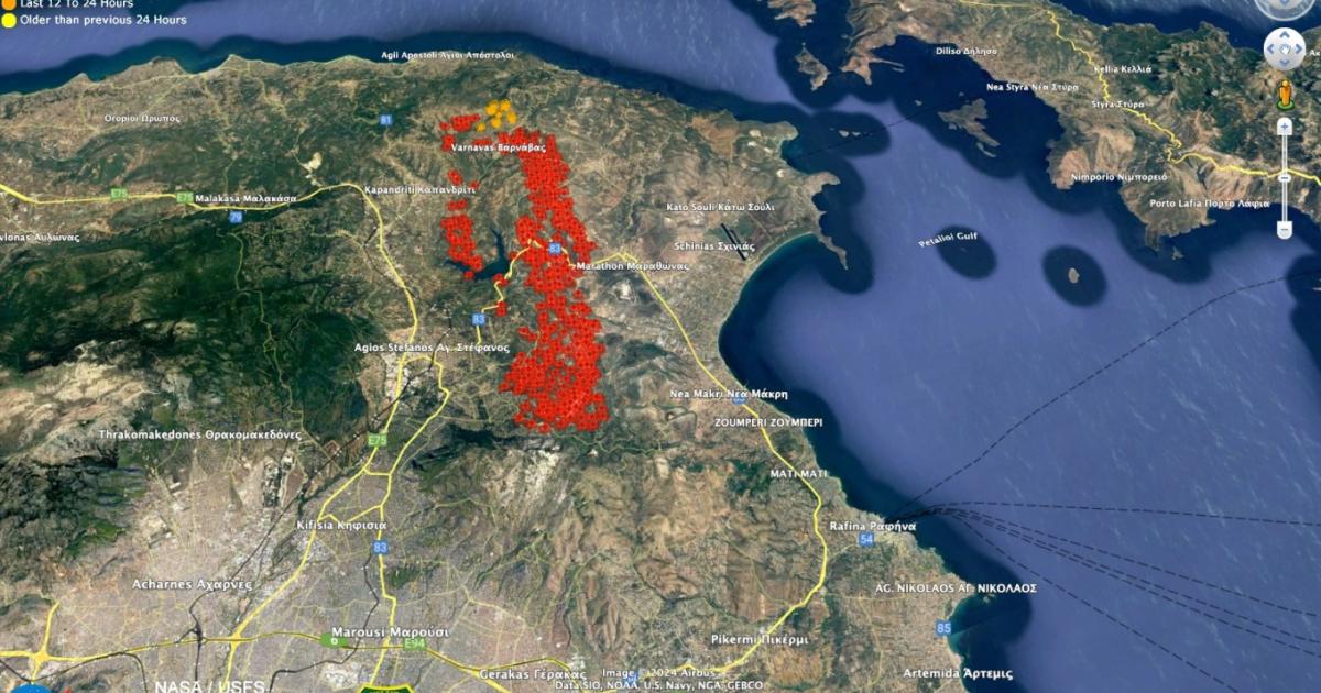 Δορυφορική εικόνα της επέκτασης της πυρκαγιάς στην Πεντέλη τα ξημερώματα. pic.twitter.com/dAFNs7TjQR— PROMETHEUS Team - Disaster Intelligence (@PROMETHEUSTeam1) August 12, 2024