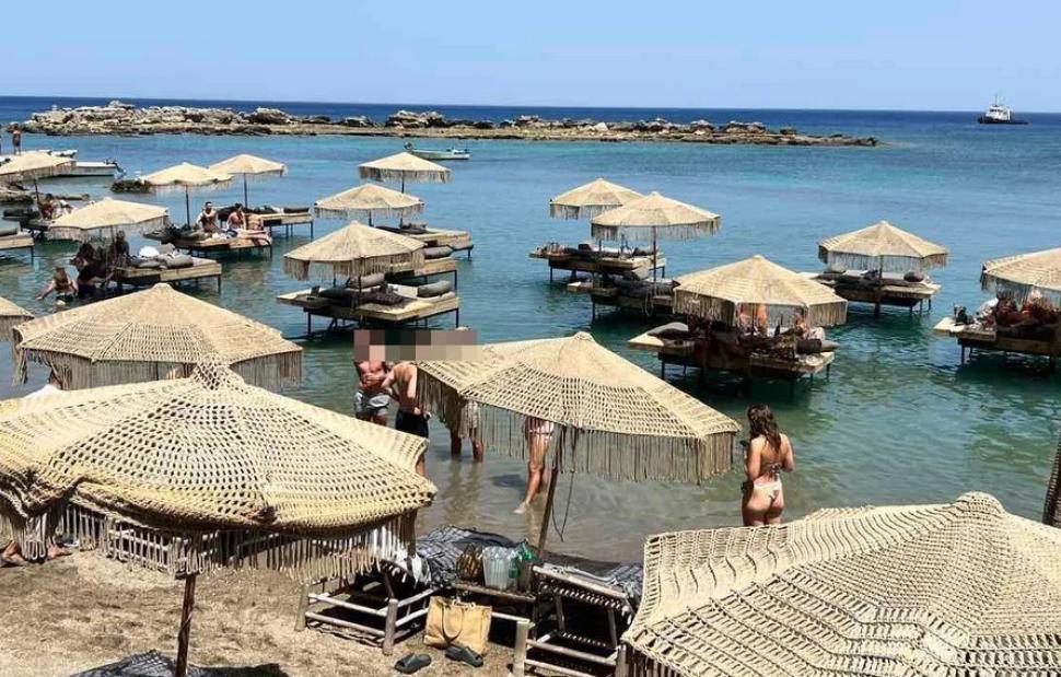 Πρόκειται για το beach bar που πέρσι είχε ξεσηκωθεί θύελλα μετά από βίντεο στα κοινωνικά δίκτυα που έδειχνε εργαζόμενο να σερβίρει μέσα στη θάλασσα. Πέρσι, η επιχείρηση είχε σφραγισθεί λόγω των κατασκευών μέσα στη θάλασσα, οι οποίες, όπως διαπιστώθηκε, τοποθετήθηκαν και φέτος.