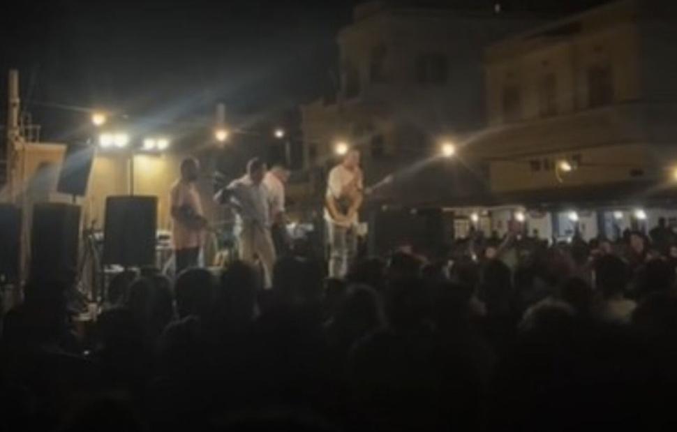 Σύμφωνα με τις ίδιες πληροφορίες, κάποια στιγμή ακούστηκε το σύνθημα «Λευτεριά στην Παλαιστίνη» και στη συνέχεια, ο τραγουδιστής στο πανηγύρι της Γιορτής της Ψημένης στα Κατάπολα Αμοργού είπε από την πλευρά του «Λευτεριά στην Ελλάδα και την Κύπρο».
