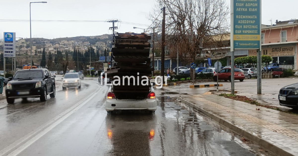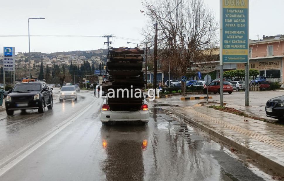 Ένα άκρως ελληνικό σκηνικό σημειώθηκε το πρωί της Δευτέρας 13/1 στην πόλη της Λαμίας όταν εμφανίστηκε στον δρόμο επιβατικό ΙΧ αυτοκίνητο φορτωμένο σαν… φορτηγό με περίπου 10 ξύλινες παλέτες, κινούμενο πραγματικά σαν «ουρανοξύστης» από την Νέα Μαγνησία προς τον κόμβο «Ξηριώτισσας» και κατεύθυνση στα βόρεια της Λαμίας.