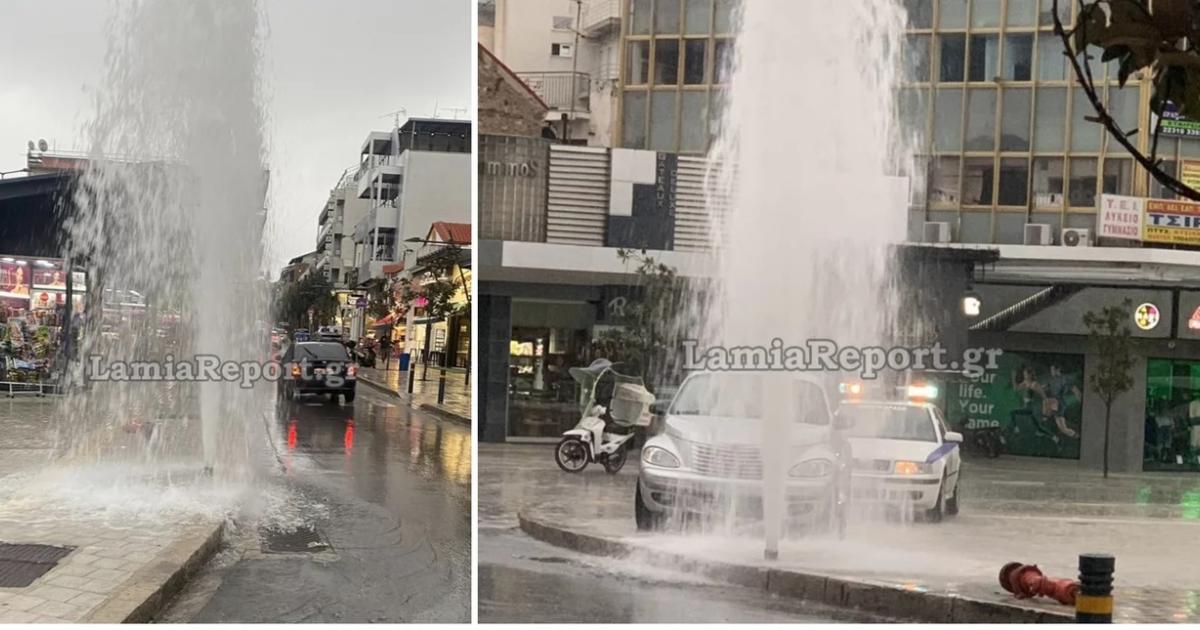 Νέο... σιντριβάνι απέκτησε νωρίς το πρωί του Σαββάτου (12/11) η πλατεία Πάρκου στη Λαμία.