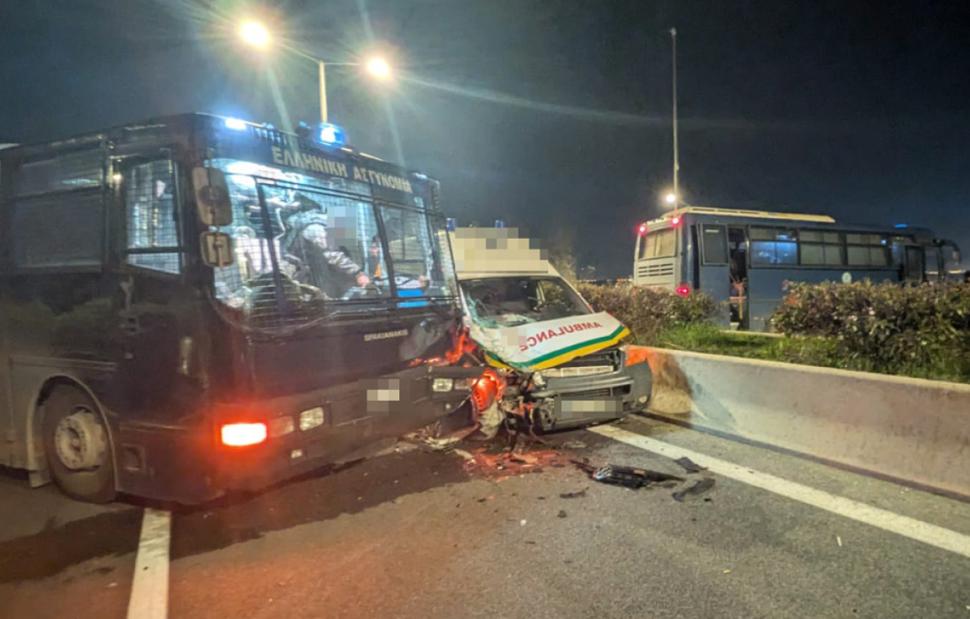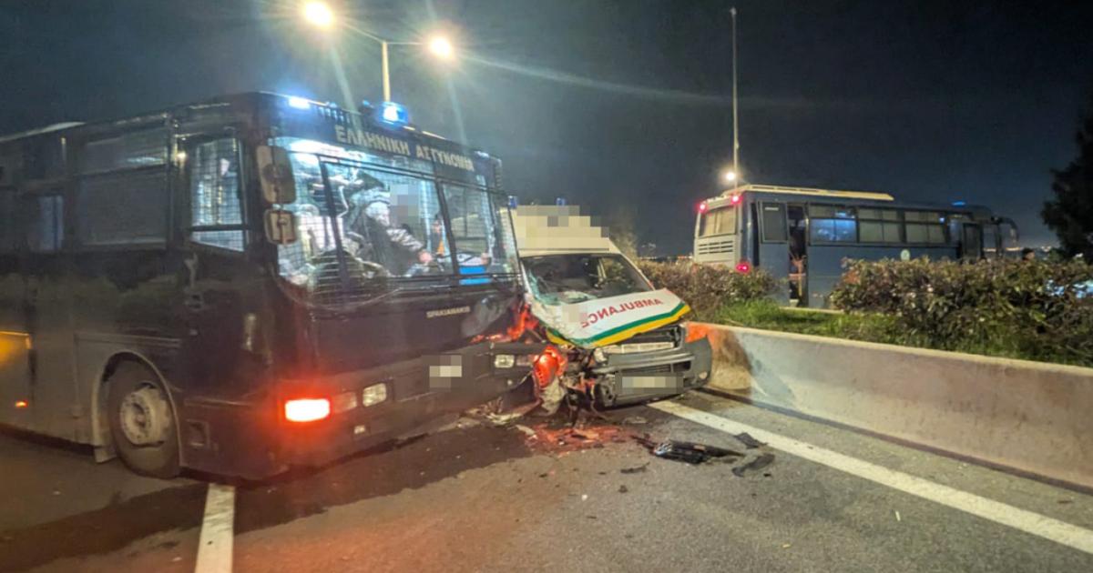 Τροχαίο ατύχημα έγινε το απόγευμα στον Πλατύκαμπο Λάρισας, όταν ιδιωτικό ασθενοφόρο προσέκρουσε σε κλούβα της Αστυνομίας που βρισκόταν σταθμευμένη στην Εθνική Οδό.