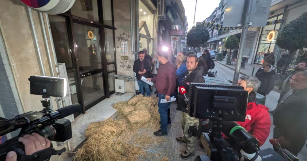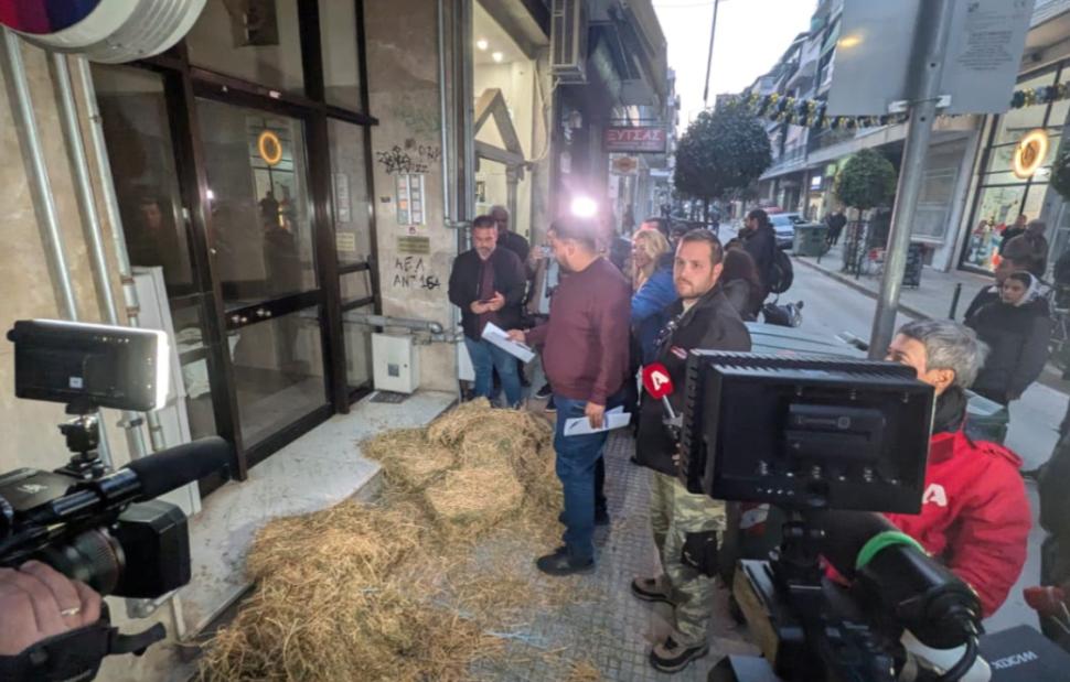 Κτηνοτρόφοι και αγρότες του θεσσαλικού κάμπου διαμαρτυρήθηκαν έξω από τα γραφεία βουλευτών της Νέας Δημοκρατίας στη Λάρισα. Αγροτοκτηνοτρόφοι της Θεσσαλίας κλιμακώνουν τις κινητοποιήσεις τους.