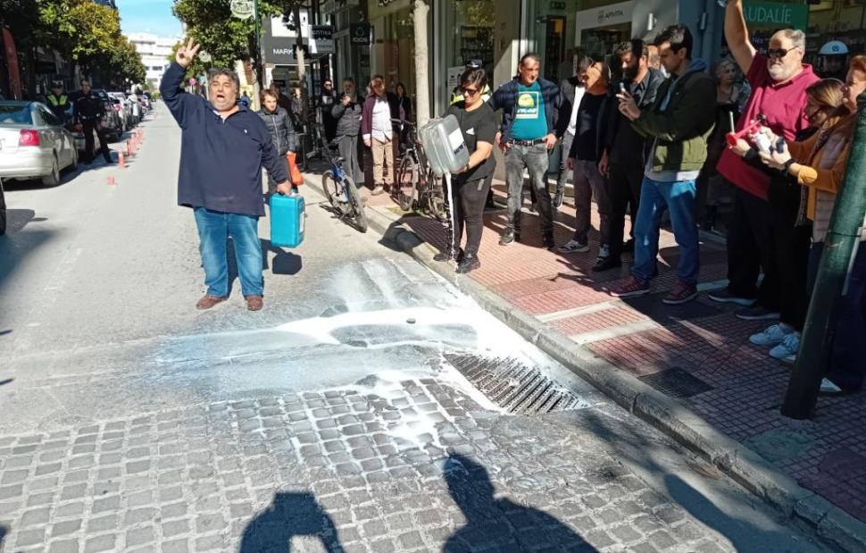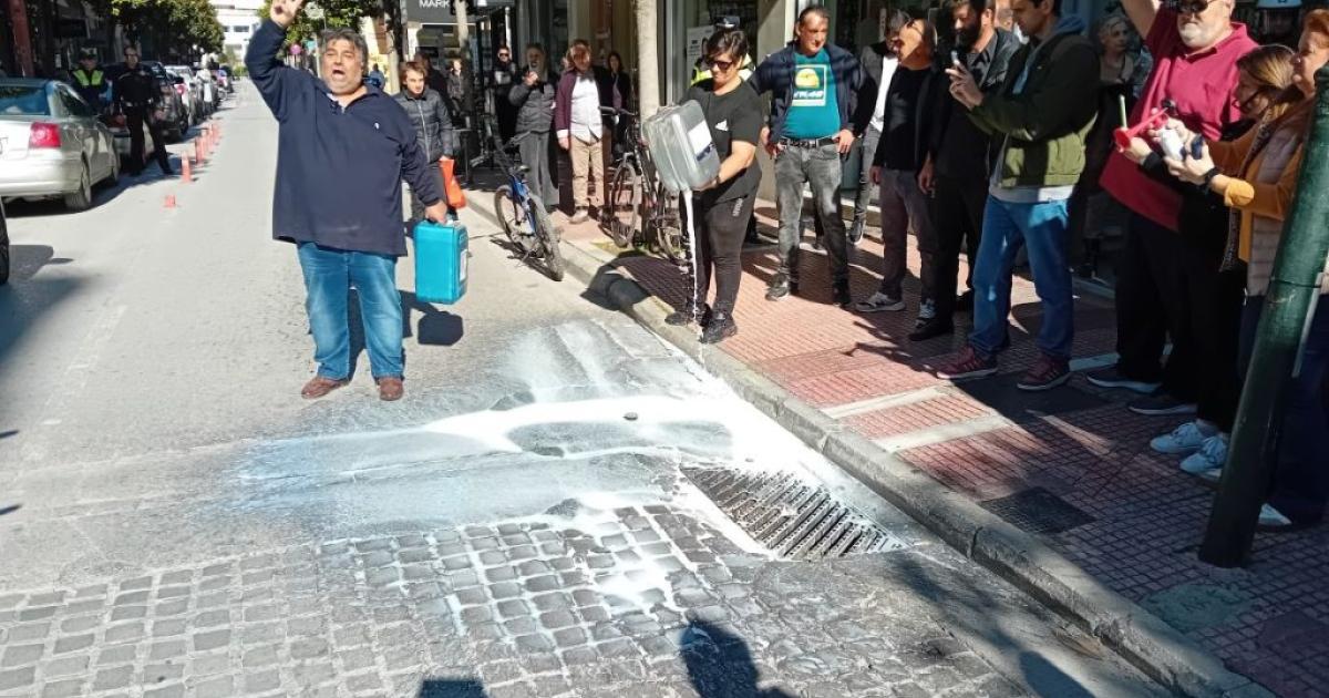 Στο σημείο βρίσκονται ισχυρές αστυνομικές δυνάμεις, ενώ οι κτηνοτρόφοι, οι οποίοι διαμαρτύρονται με έντονο τρόπο, έχυσαν γάλα στο δρόμο, ενώ ζητούν να ανέβουν στο γραφείο του Χρήστου Κέλλα, ο οποίος ωστόσο βρίσκεται εκτός Λάρισας.