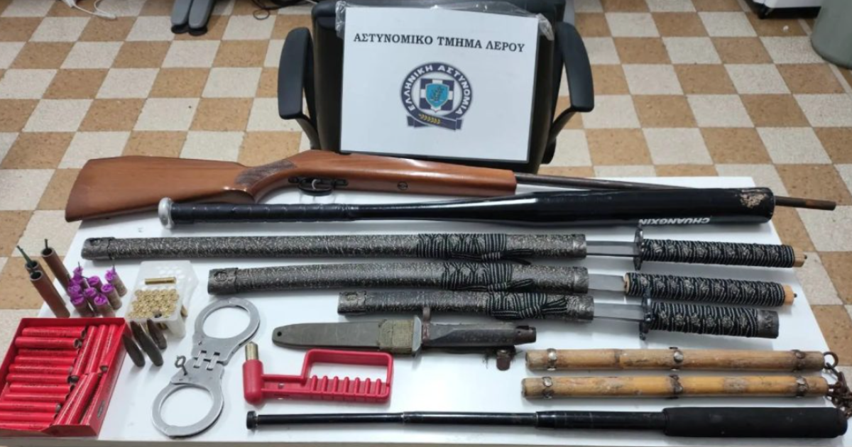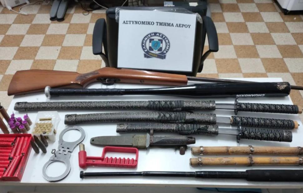 Συλλήψεις δύο ημεδαπών ηλικίας 41 και 44 ετών πραγματοποιήθηκαν στη Λέρο και σε βάρος τους σχηματίστηκαν ξεχωριστές ποινικές δικογραφίες για παραβάσεις της νομοθεσίας περί όπλων και πυροτεχνημάτων.