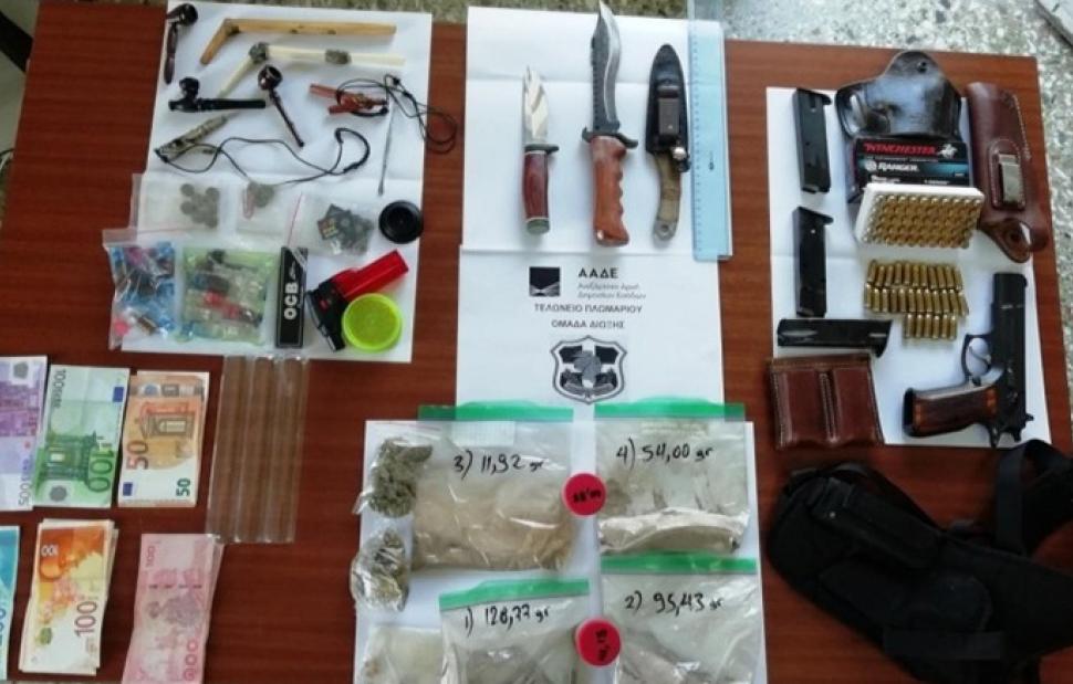 Όπλα, πυρομαχικά και εξαρτησιογόνες ουσίες εντοπίστηκαν μετά από ειδική επιχείρηση στελεχών του τελωνείου Πλωμαρίου με τη συνδρομή δύο τελωνειακών υπαλλήλων του τελωνείου Μυτιλήνης καθώς και του σκύλου ανιχνευτή ναρκωτικών ουσιών και ρευστών διαθεσίμων «BILL» σε θαλαμηγό σκάφος στο λιμάνι Πλωμαρίου την προηγούμενη Πέμπτη 19 Αυγούστου.