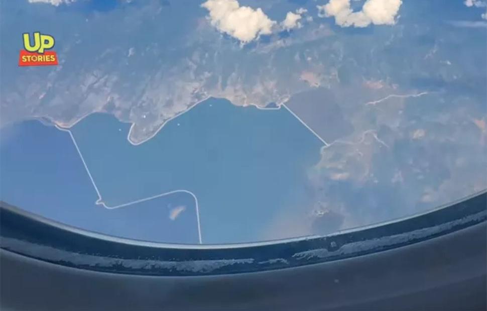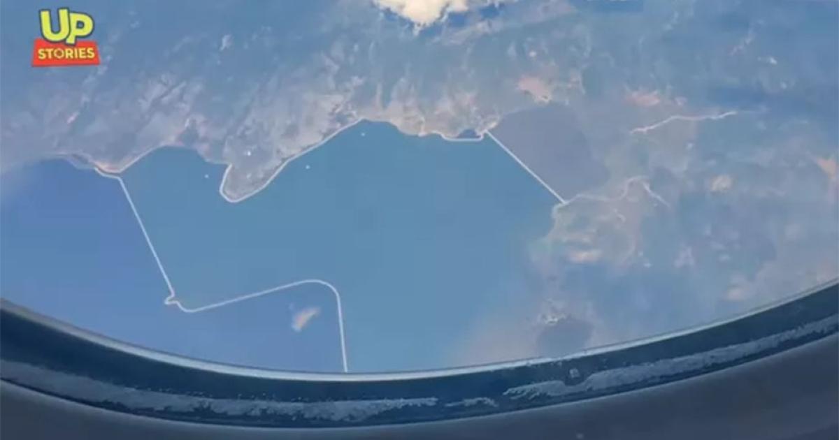 Αεροπλάνο πετάει πάνω από τη λίμνη Κάρλα στη Θεσσαλία μετά τη σαρωτική κακοκαιρία. Οι πλημμύρες άλλαξαν το σκηνικό και αυτό αποτυπώνεται μέσα από τις εικόνες που τραβήχτηκαν από τα 35.000 πόδια. Η λίμνη υπερχείλισε και ξεχύθηκε στην περιοχή φτάνοντας στα όρια του 1962. Τότε που είχε αποξηρανθεί επειδή προκαλούσε πλημμύρες στις πέριξ γεωργικές καλλιέργειες, ενώ ορισμένες βαλτώδεις εκτάσεις γύρω της προκαλούσαν την έντονη παρουσία εντόμων.