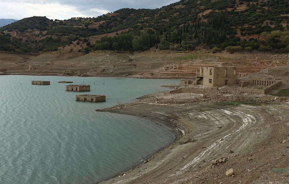 Σε περιόδους λειψυδρίας, όπως συνέβη το 1993, μέρος των σπιτιών εμφανίζεται στις όχθες.