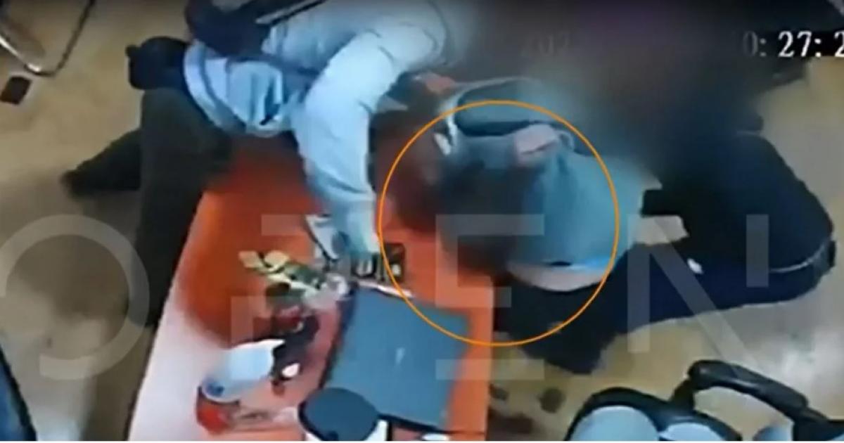 Οι δύο ληστές αρπάζουν τη γυναίκα από τα ρούχα και την τραβούν για να απομακρυνθεί από το γραφείο της και ο ένας από τους δύο την καρφώνει στα πλευρά και την πλάτη με το μαχαίρι που κρατούσε.