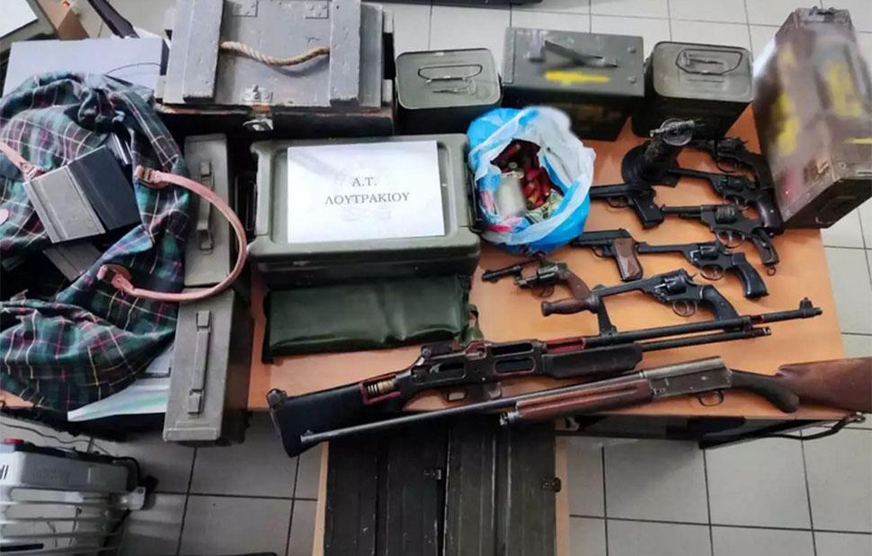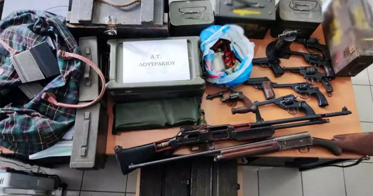 Συνελήφθη ένας άνδρας 62 ετών για παράβαση της νομοθεσίας για τα όπλα. Αστυνομικοί βρήκαν στο σπίτι του στο Λουτράκι από περίστροφα και φυσίγγια μέχρι ξιφολόγχες.