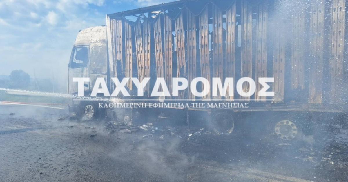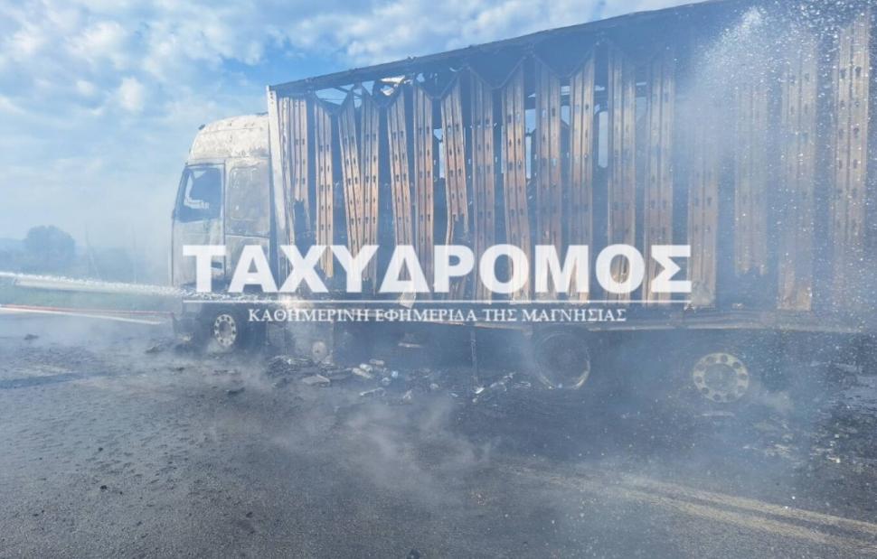 Ένα φορτηγό τυλίχτηκε στις φλόγες στον επαρχιακό δρόμο Πλατάνου-Σούρπης, ενώ ήταν εν κινήσει στον Αλμυρό Μαγνησίας. Σύμφωνα με πληροφορίες, το φορτηγό μετέφερε εμφιαλωμένα νερά.