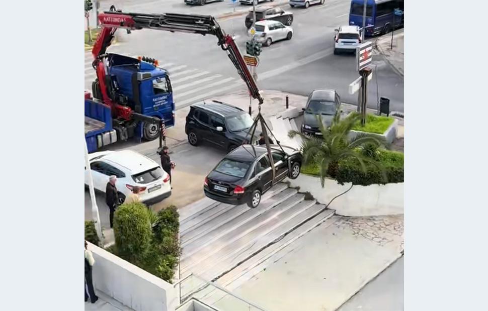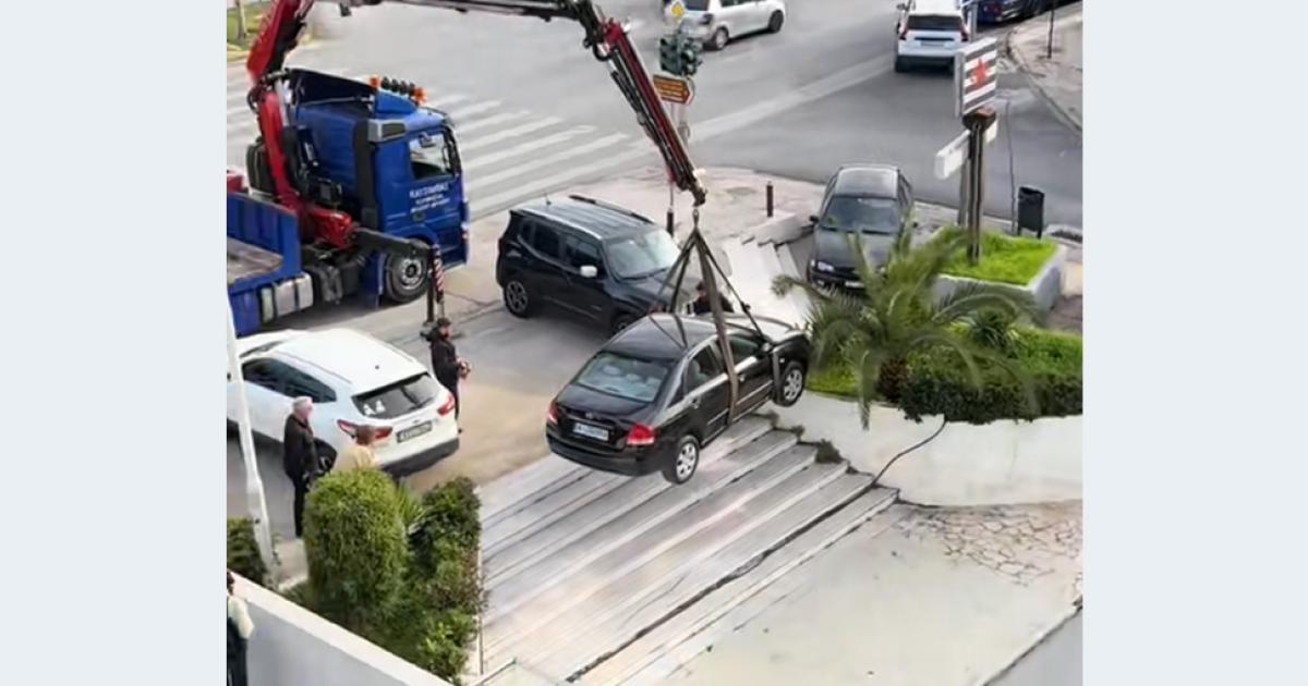 Με γερανό απομακρύνθηκε αυτοκίνητο στο Μαρούσι, αφού η ιδιοκτήτρια του κατέβηκε… μέχρι και σκαλιά για να προλάβει το ραντεβού στο οποίο είχε αργήσει.