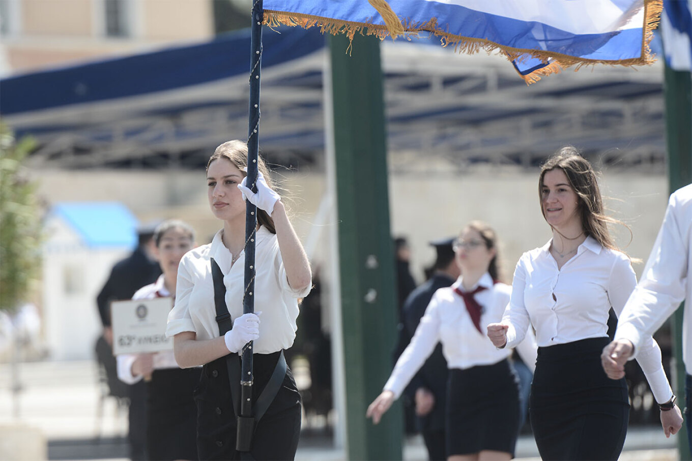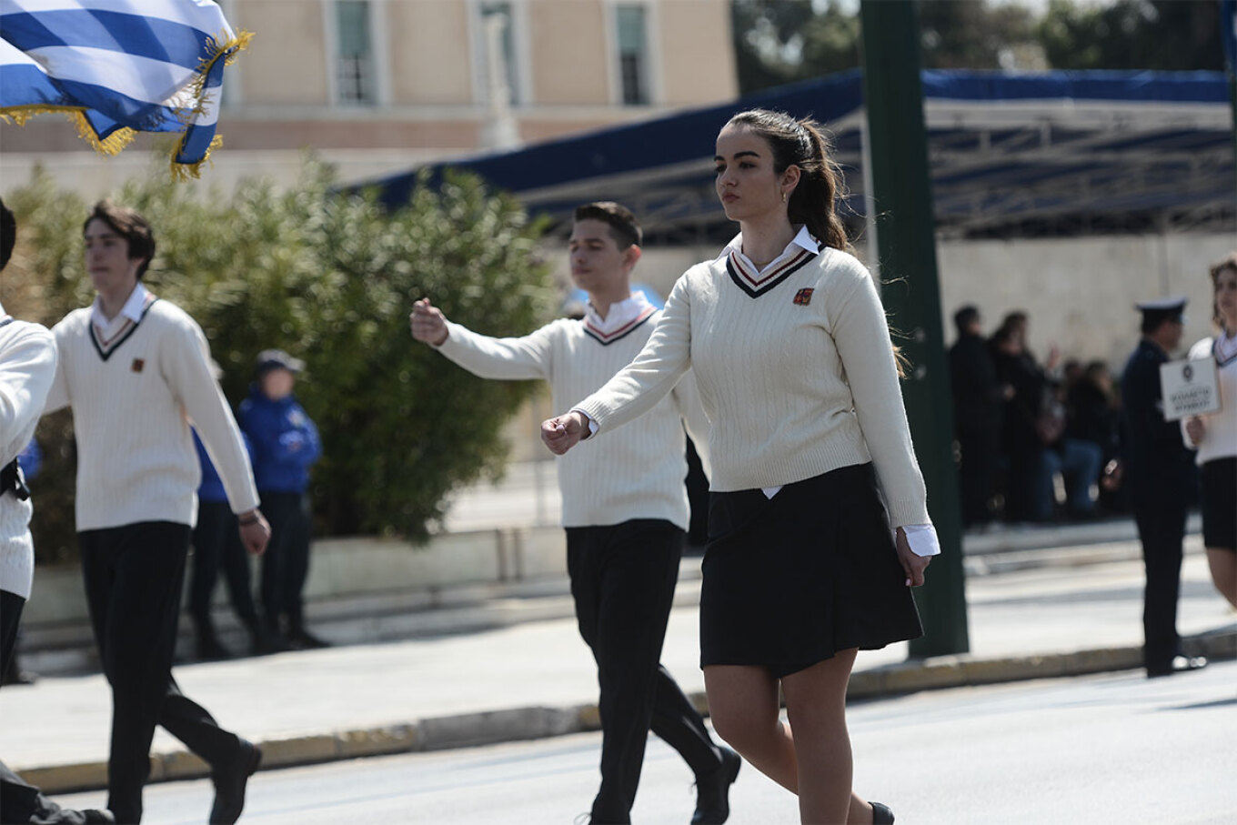 Νεανικά χαμόγελα, ενθουσιασμό και υπερηφάνεια γέμισε το κέντρο της Αθήνας από τα παιδιά που πήραν μέρος στη μαθητική παρέλαση για την εθνική επέτειο της 25ης Μαρτίου.