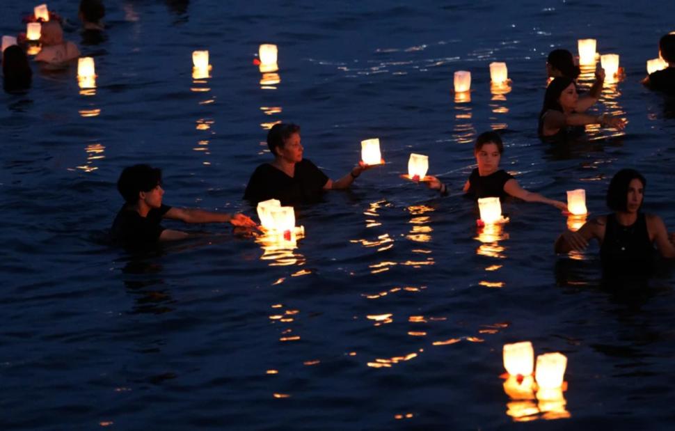 Στις 21:00, περπατώντας από το Ν.Α.Ο.ΜΑ προς τη μαρτυρική Αργυρά Ακτή, συγγενείς και φίλοι τοποθέτησαν στη θάλασσα 104 πλωτά φαναράκια και λουλούδια στη μνήμη των θυμάτων και άσπρα μπαλόνια για την Εβίτα και τα 11 παιδιά που δεν πρόλαβαν να μεγαλώσουν.