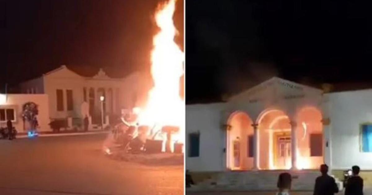Κάτοικοι του χωριού Μάσαρη στη Ρόδο έχουν ανάψει μεγάλη φωτιά στην κεντρική πλατεία στο πλαίσιο του εθίμου για το κάψιμο του Ιούδα.