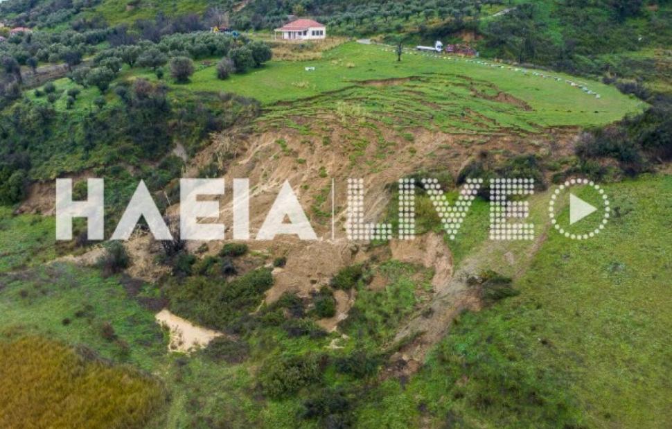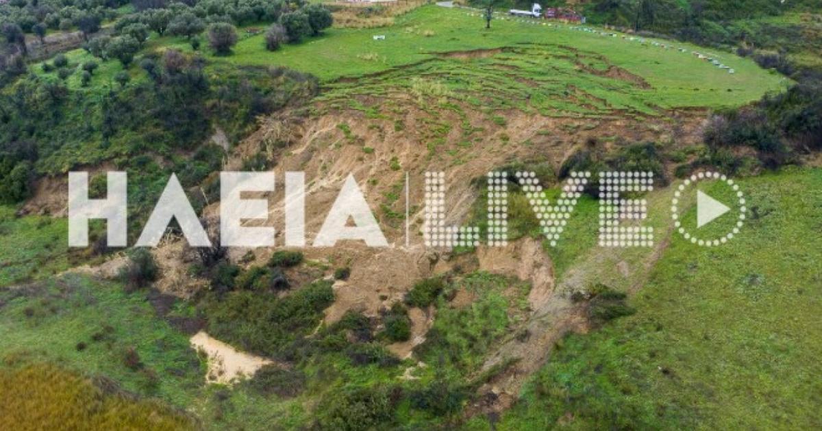 Ολόκληρη πλαγιά υποχωρεί, βάζοντας σε κίνδυνο τις κατοικίες, ενώ ήδη έχει καταστραφεί μέρος του δρόμου. Σε βίντεο από drone φαίνονται οι ρηγματώσεις δίπλα στα σπίτια που μαρτυρούν την κίνηση των εδαφών στην πλαγιά που είναι χτισμένο το χωριό.