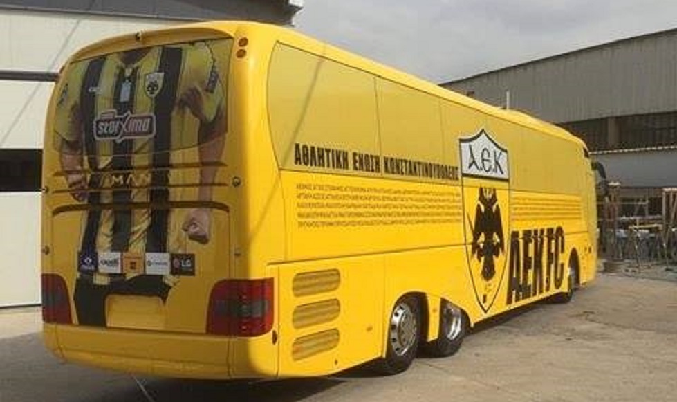 Το πρώην πούλμαν της Ντορτμουντ «ανανεώθηκε» και είναι έτοιμο προς χρήση από τους «κιτρινόμαυρους». Μάλιστα θα κάνει “ντεμπούτο” αύριο, Τρίτη, στον αγώνα της ΑΕΚ κόντρα στην Μπάγερν Μονάχου για την τρίτη αγωνιστική των ομίλων του Τσάμπιονς Λιγκ.
