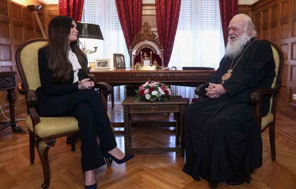 Αρχιεπίσκοπος κ. Ιερώνυμος: Γεια σας. Είναι ιδιαίτερη χαρά που σας υποδεχόμαστε. Καλώς ορίσατε. Να περάσετε καλά στην Ελλάδα. Ελπίζω να έχουμε ωραίες συνομιλίες.