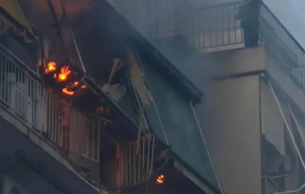 Φωτιά ξέσπασε το απόγευμα της Δευτέρας σε διαμέρισμα 5ου ορόφου πολυκατοικίας στην περιοχή του Γκύζη, επί της οδού Κάλβου.