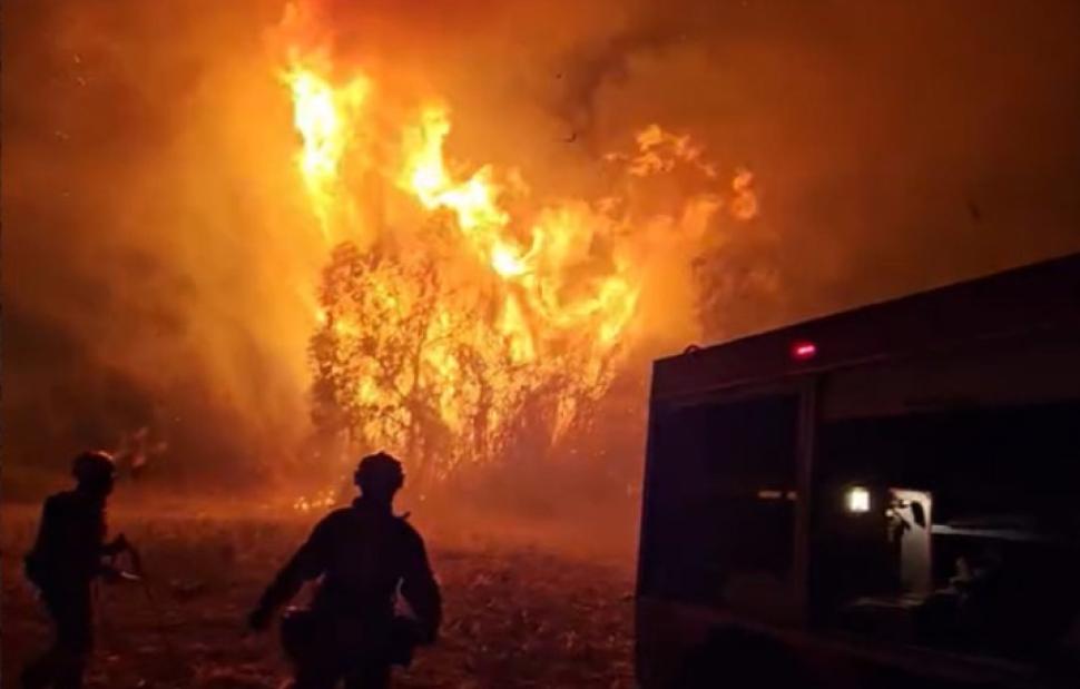 Μεγάλη πυρκαγιά μαίνεται στα Λεχαινά Ηλείας. Η φωτιά ξέσπασε το βράδυ της Παρασκευής.