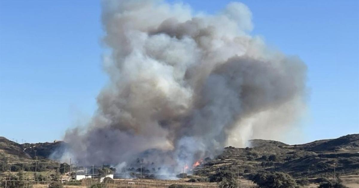Πυρκαγιά μαίνεται σε χαμηλή βλάστηση στην περιοχή Ζεφύρια, κοντά στο αεροδρόμιο της Μήλου.