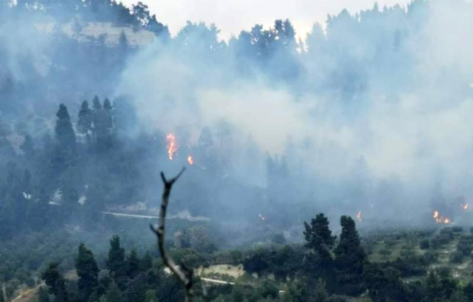 Πληροφορίες αναφέρουν ότι δεν απειλούνται σπίτια, ενώ στην περιοχή πνέουν ισχυροί άνεμοι.