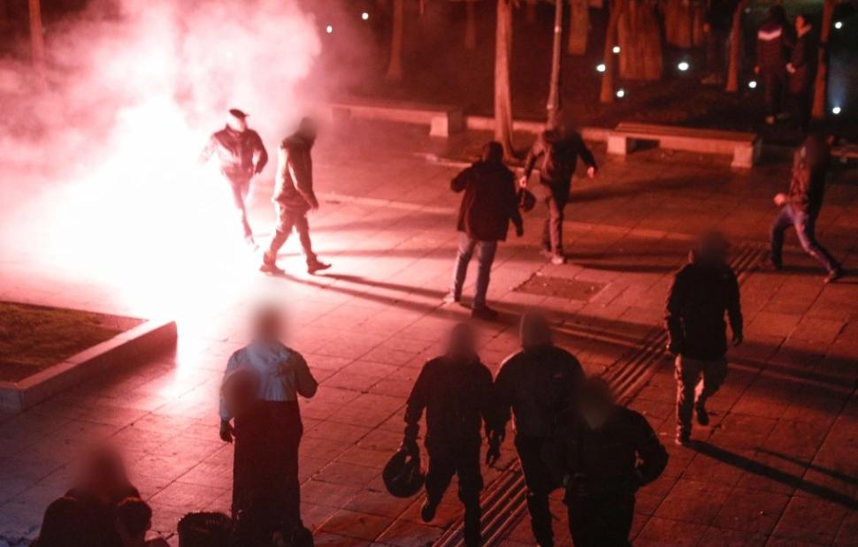 Ακολούθως τα άτομα αυτά κινήθηκαν προς την Πλατεία Συντάγματος όπου πέταξαν τρικάκια και αποχώρησαν.